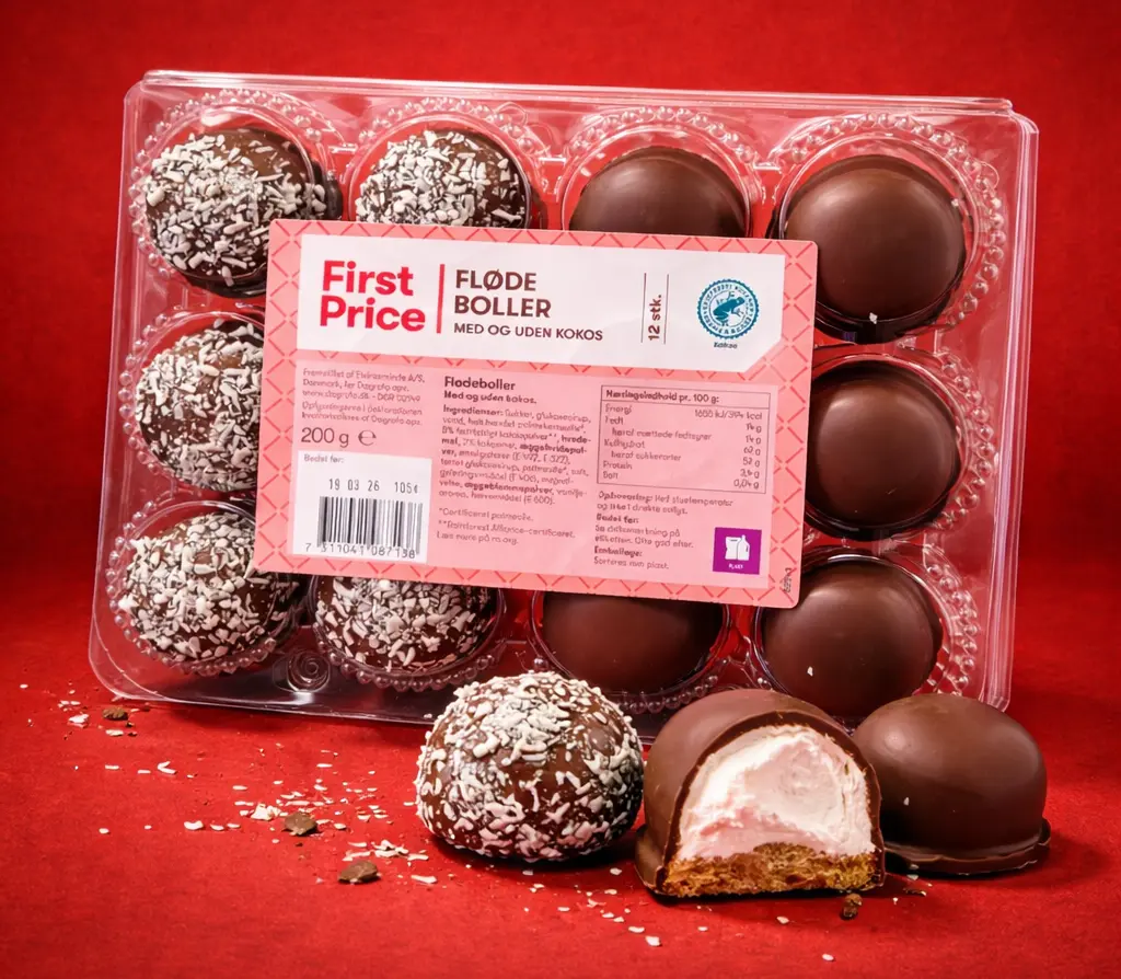 Experience the bliss of Flødeboller—light, fluffy marshmallow puffs topped with rich chocolate on a crisp biscuit base. Perfect for a sweet treat anytime!